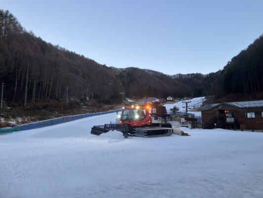 本日はシニアデー☆50歳以上の方は1日券3000円です☆リフト乗り場雪入れ作業のため運行開始が遅れます。