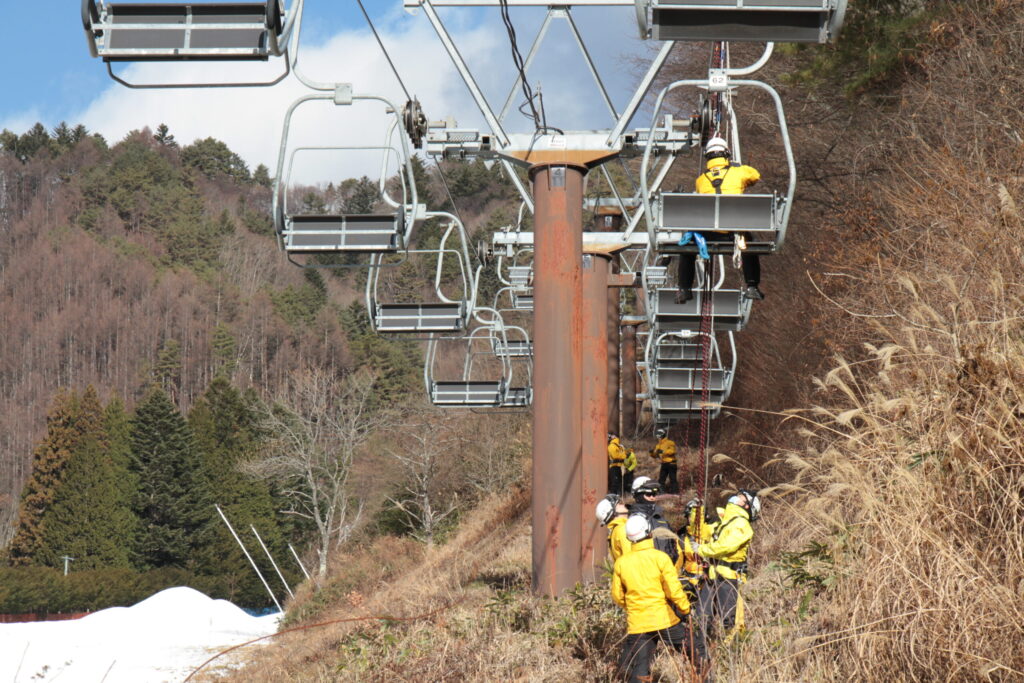 木曽広域消防の皆さまがご来場しリフトを使用した救助訓練が行われました。