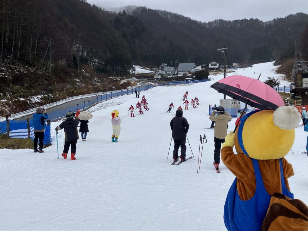 そんな天気ですがシーズン券の皆さんに沢山ご来場いただき雨の中でしたが結構ゲレンデは賑わっていました。9時30分からはスキースクールのデモ滑走が行われオープンに華を添えていただきました。