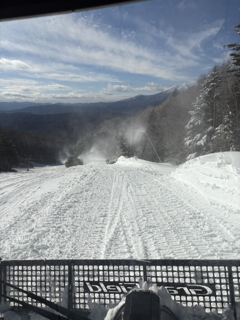 現在、ファミリーコースの増雪とシークレットAコースの早期オープンを目指し夜部隊が昼夜作業しています。