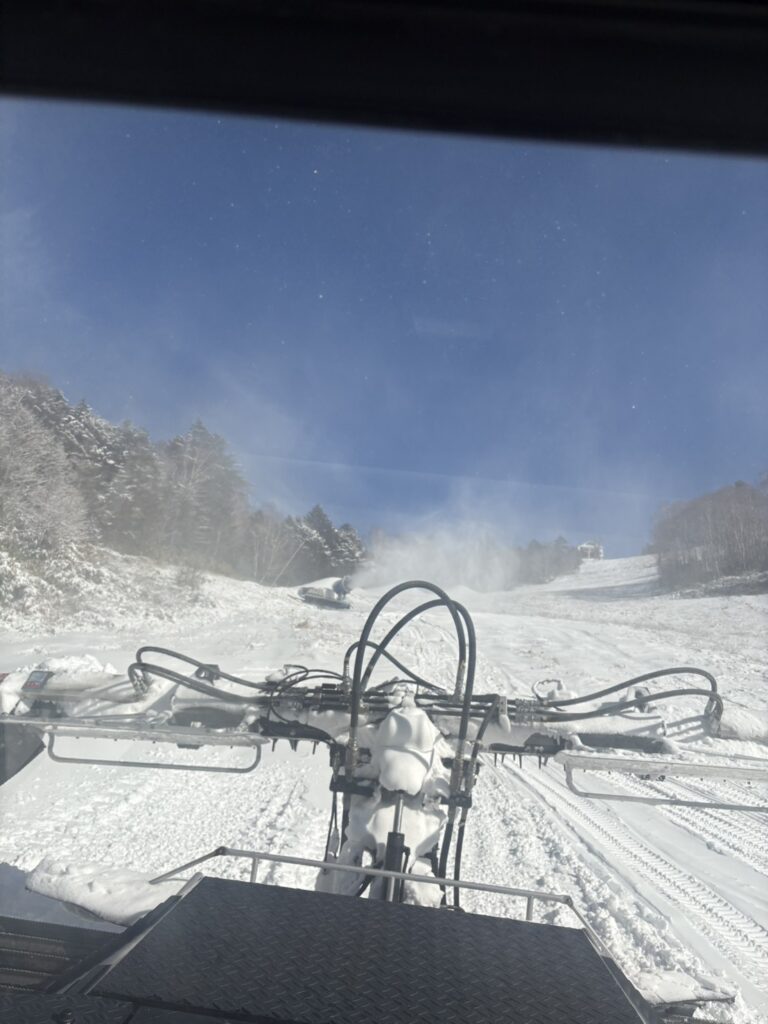 今までの降雪作業でシークレットトップ斜面までなんとか完了し、残すは一番難関なトップ斜面です。今晩は夜部隊土曜班が担当しトップ斜面にファンタイプ4台集中して降雪しています。