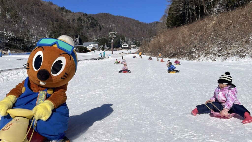 今日は地元木曽こども園の年長さんがそり滑りにきました。そり滑りも今シーズンまで来年からはスキー教室です。