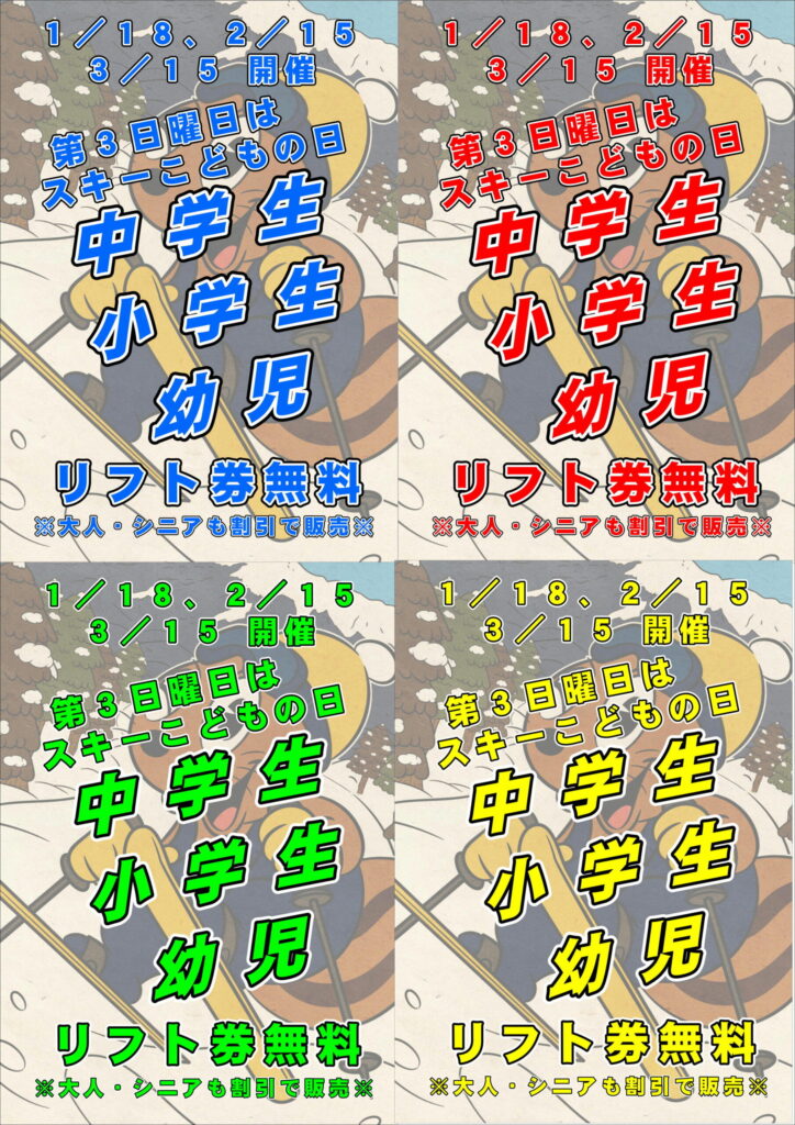 小人1日券無料!スキーこどもの日!