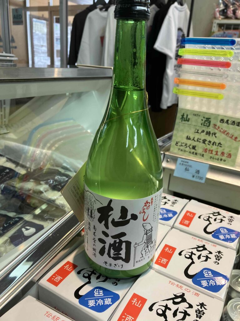 こんな寒い日は木曽の地酒で温まるのも良いものです。例年売店で販売している中善酒造の雪の華が早々に売り切れたので、西尾酒造の杣酒を販売しています。このお酒も雪の華同様に発酵しているので栓を開ける時に一気にあけると噴き出してしまうのでゆっくり時間をかけて開けてください。口当たりの良い辛口の木曽の地酒です。