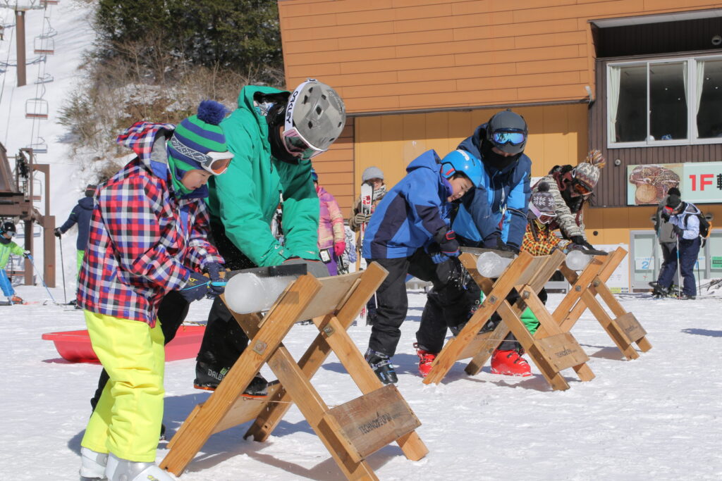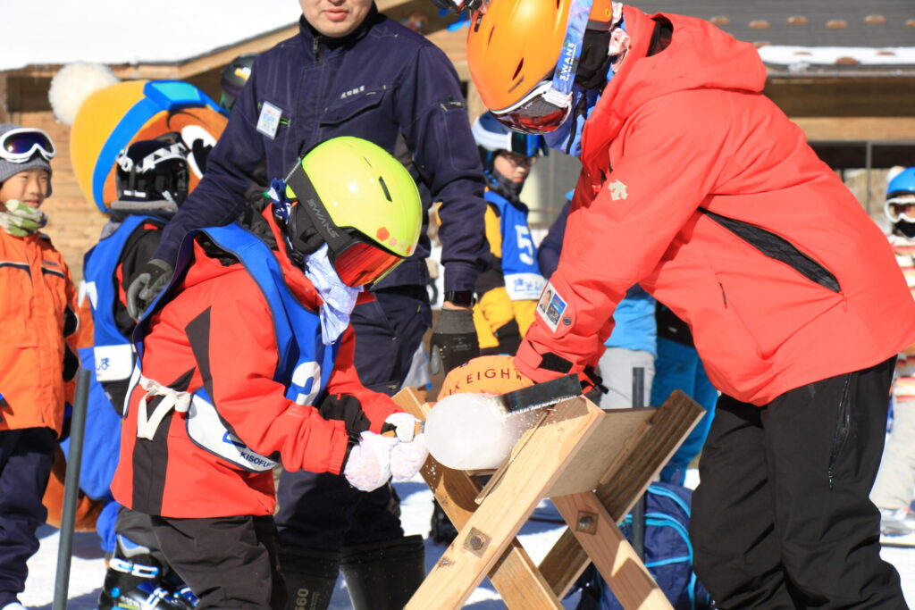 木曽のマイナス気温でできた氷柱を、ノコギリを使い『親子で協力して』切るイベントです!