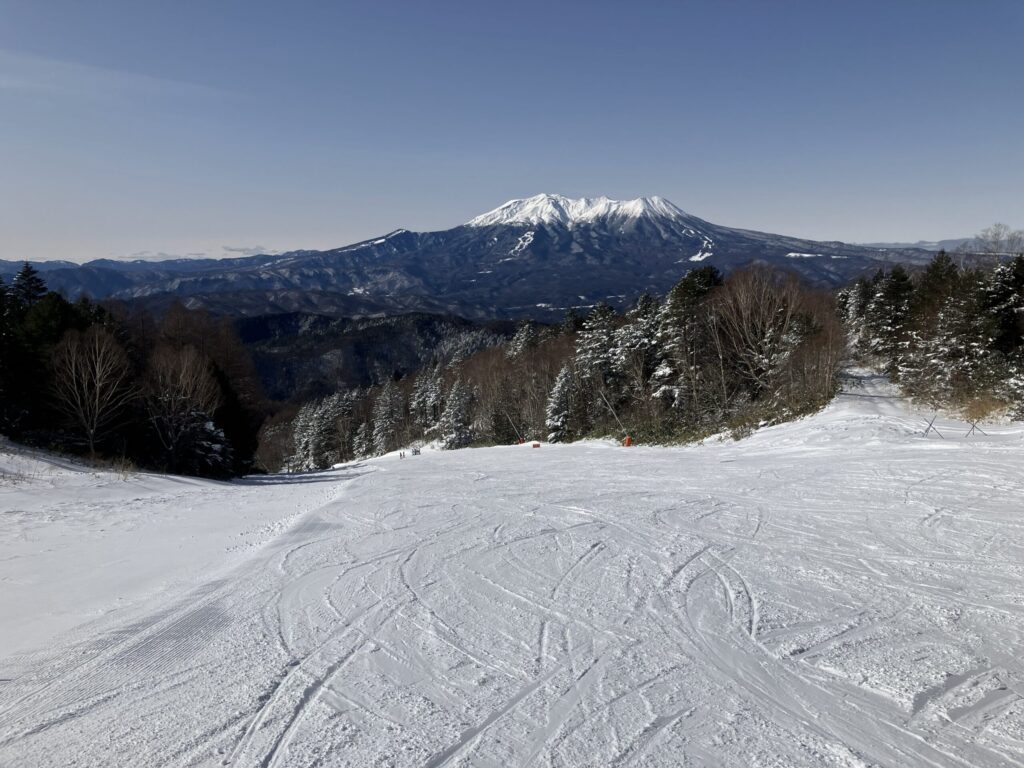 木曽福島スキー場は標高1500mのレストランHAKUSANからゲレンデトップの1904mの間はどこからでも御岳山が望めます。今日は様々な標高点から御岳山を撮影したのでアップします。