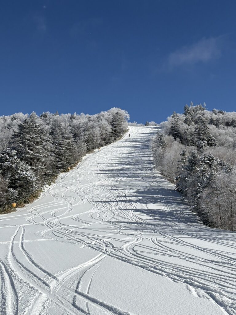 今朝も気温が低く御嶽山の朝焼けがとってもきれいでした。こんな朝は日中も晴れて気温が上昇し最高のコンディションになります。シニアデーの今日は来場者も比較的多くゲレンデもにぎやかでした。今週は金曜日までこんな感じの天気が続きそうです。週末は寒気が南下してくるそうなので寒くなりそうです。