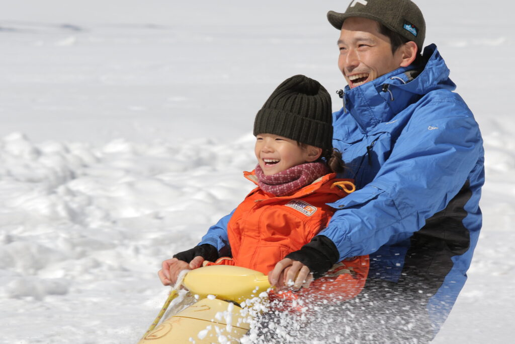 14日の土曜は午前にキッズイベント「シャボン玉は寒いと凍るのか?」・営業終了後は先週に引き続き「圧雪車・モービル・バギーの乗車体験ツアー」も開催。