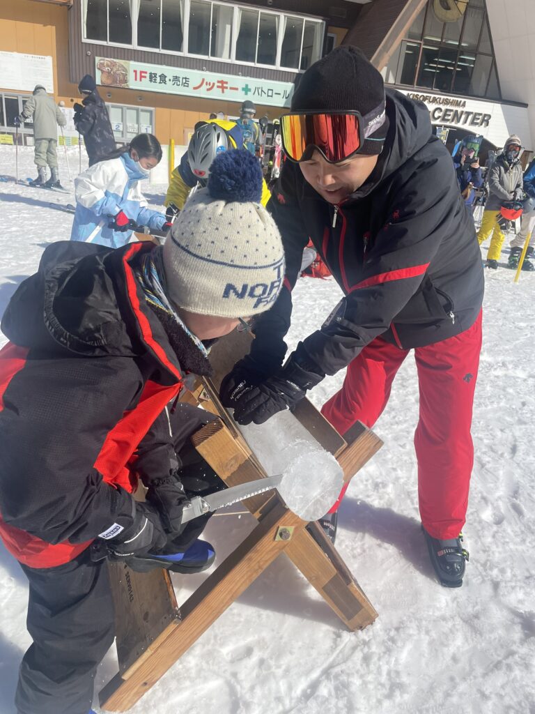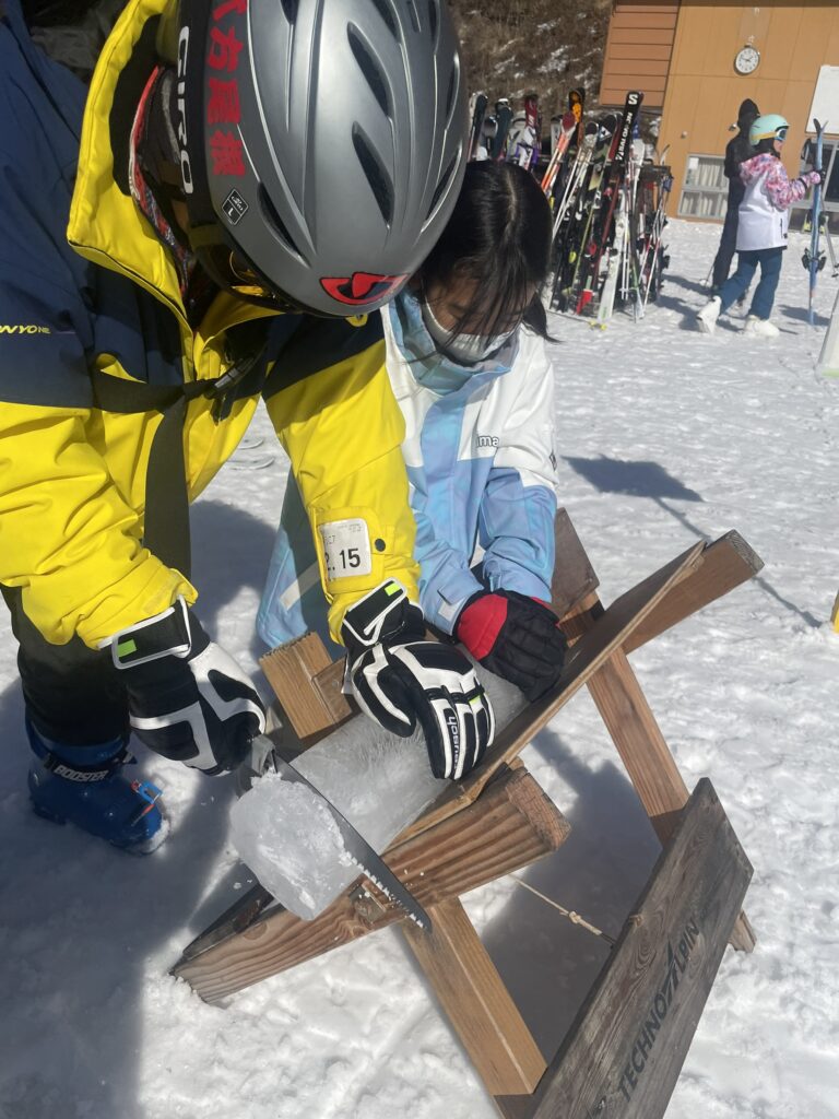 親子で20秒交代で氷柱を切るのですが先行の子供だけで氷柱を切ってしまう一幕もありました♪