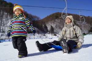 木曽福島スキー場は、5歳から小学生までのお子様のスキーとの出会いを応援します。スキーデビューにピッタリなキッズパークは、雪遊びからソリ、そして初めてのスキーといろいろな形で雪と遊ぶことができます。エリアには、全国でも珍しいキッズハウスを完備。ご家族の皆さんも、お子様が遊ぶ姿を暖かなハウス内から見守ることが出来ます。また、当スキー場は全コーススキー専用だから、スキーヤー同士の動きが把握しやすく安心。2500mものロング初心者コースもあり、キッズのスキー上達に最適なスキー場です。